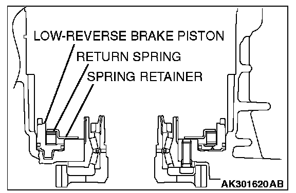 3. Install the low-reverse brake piston, return spring, and spring retainer into the transaxle case.