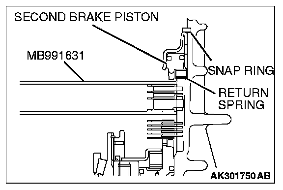 15. Install the return spring, second brake piston and snap ring.