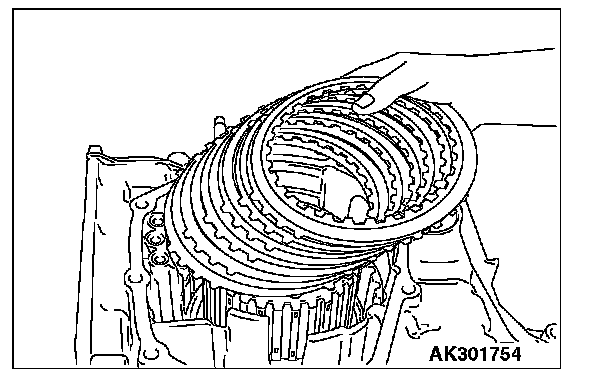 ^ Apply transmission fluid to friction components, rotating parts, and sliding parts before installation. Immerse new clutch discs or brake discs in transmission fluid for at least two hours before assembling them.
