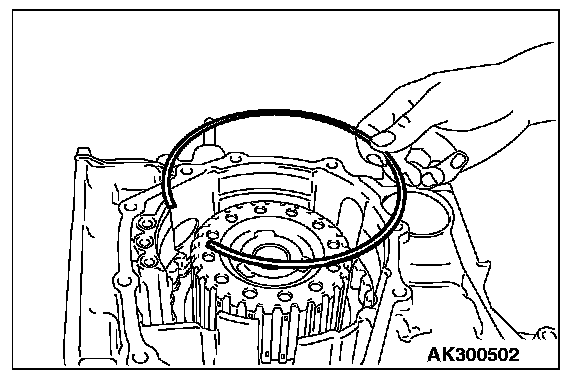 21. Install the snap ring into the groove of transaxle case output shaft bore.