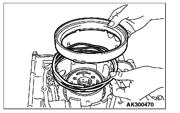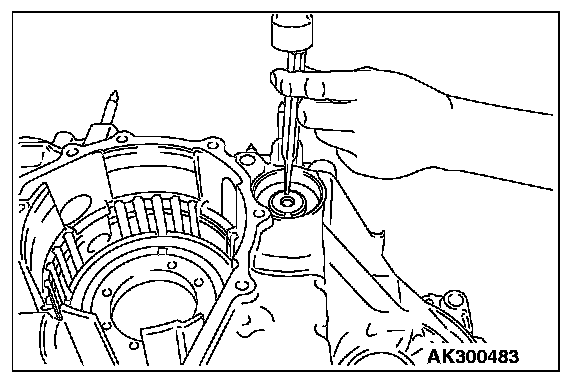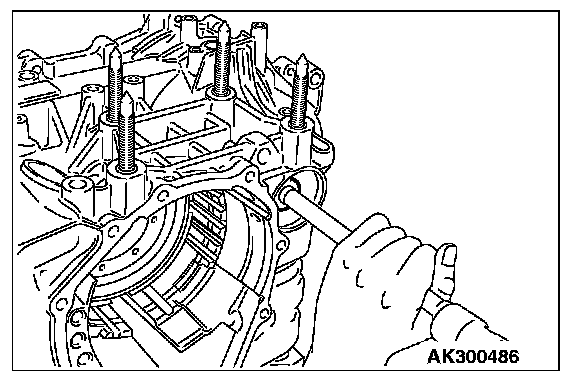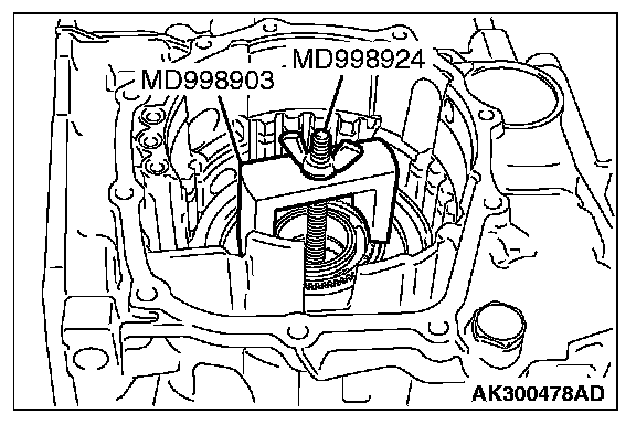 1) Using special tools MD998903 and MD998924, compress the one-way clutch inner race.