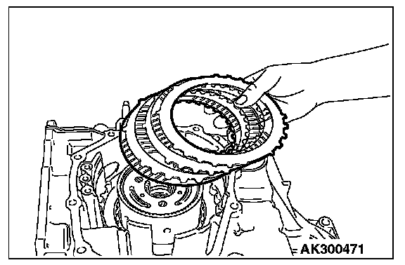 49. Remove the brake plates (five pieces), brake discs (six pieces) and pressure plate.