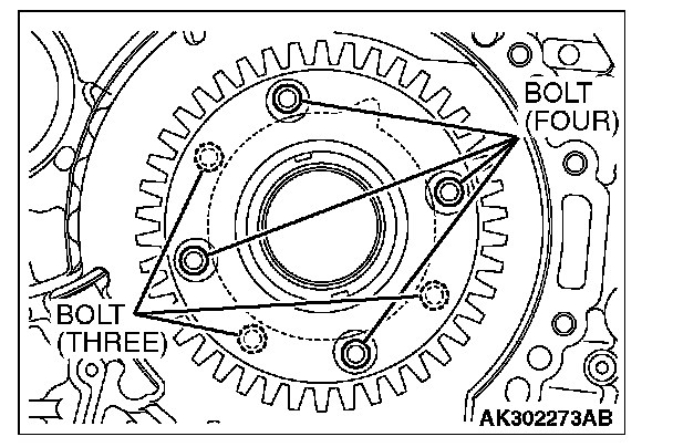 Then, turn the gear 1/8 turn (45°) and remove the remaining bolts.