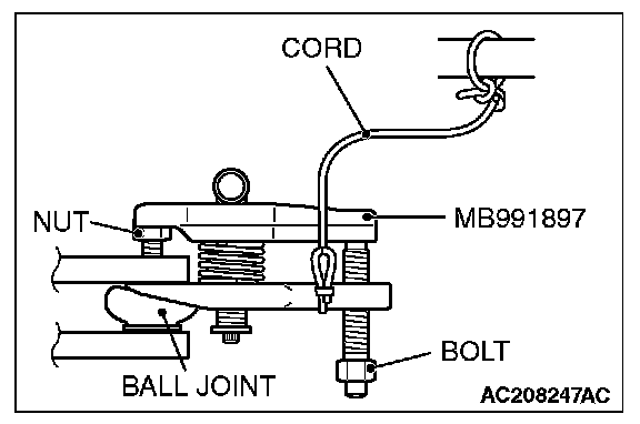 1. Replace the self locking nut with a regular nut, because the original one is a little bit large to install the special tool. Install special tool MB991897 as shown in the figure.