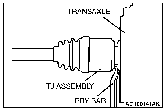 3. Remove the drive shaft from the transaxle by the following procedure. Insert a pry bar between the transaxle case and the drive shaft, and then pry the drive shaft from the transaxle.
