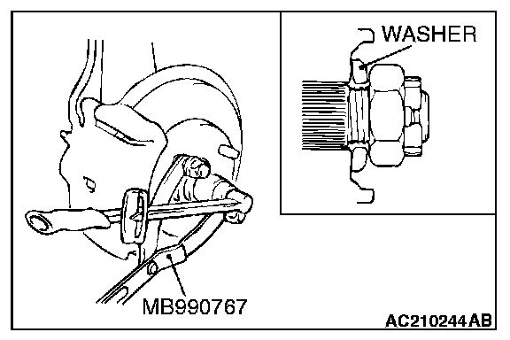 Use special tool MB990767 to fix the hub and remove the drive shaft nut.