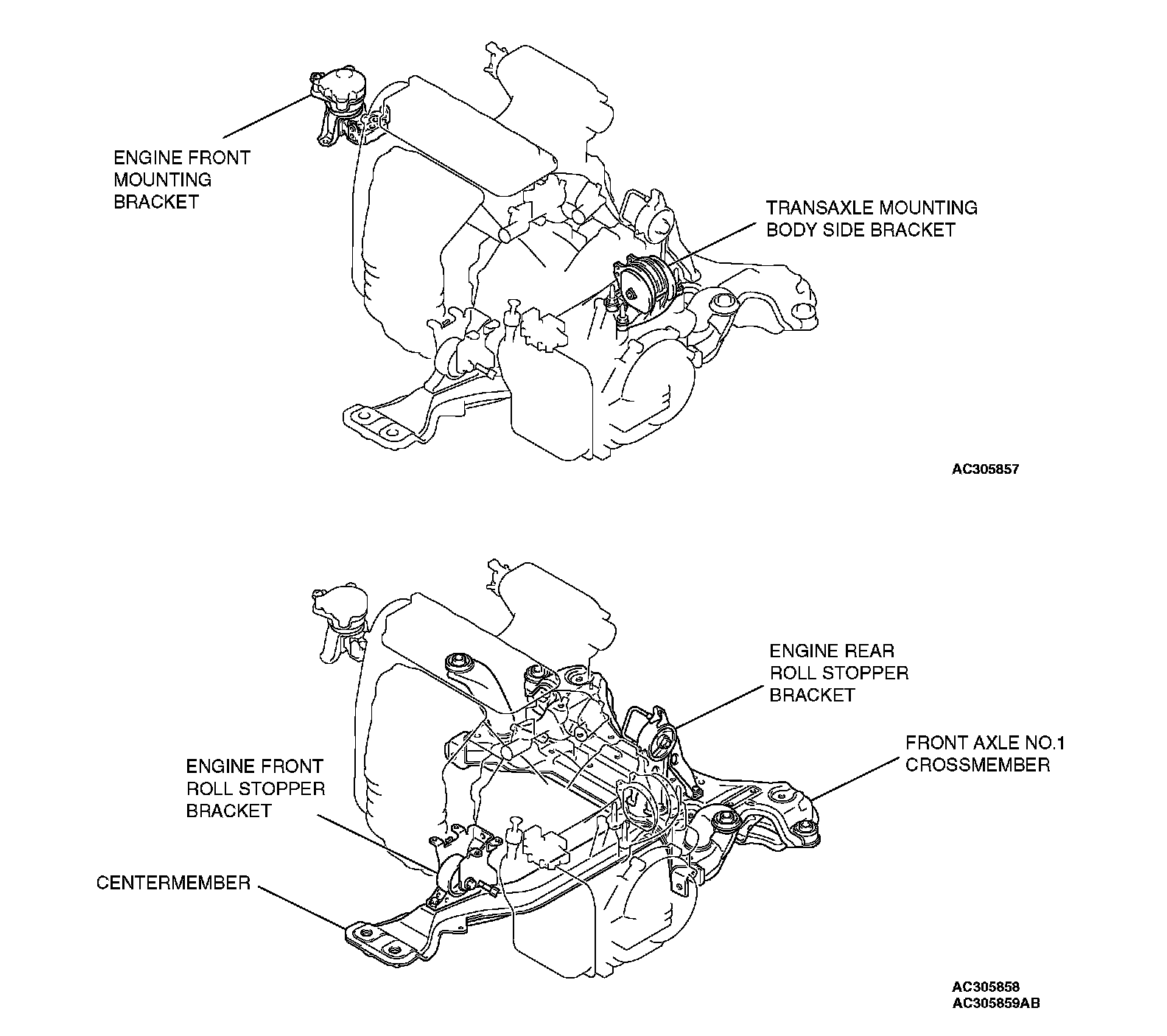 ^ A roll stopper bracket in the upper area limits engine rolling. Furthermore, large diameter insulator reduces idle vibration.