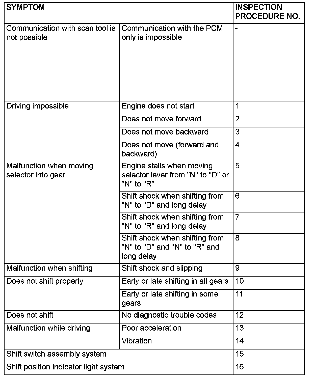 SYMPTOM CHARTCAUTION: