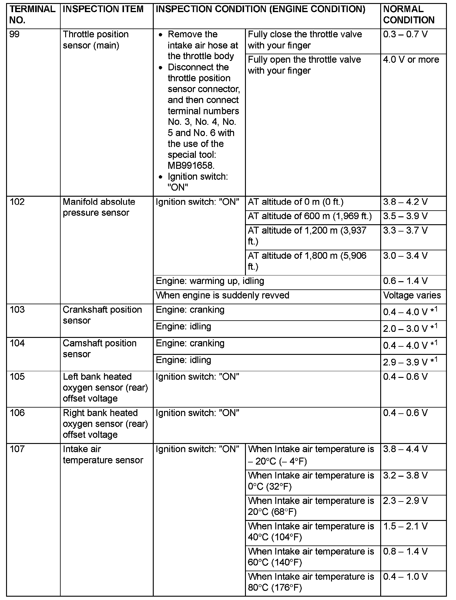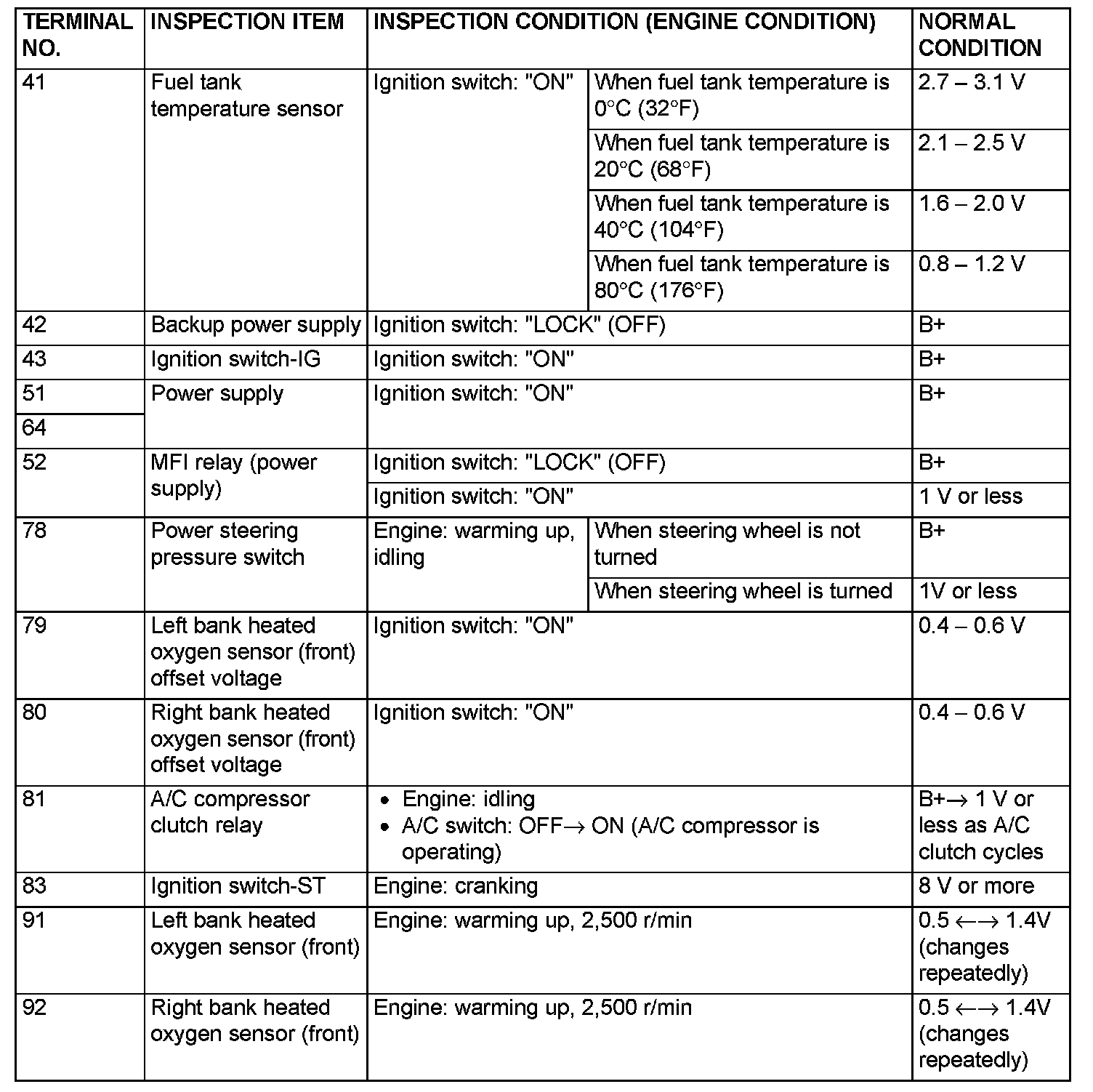 Terminal Voltage Check Chart (Part 1):