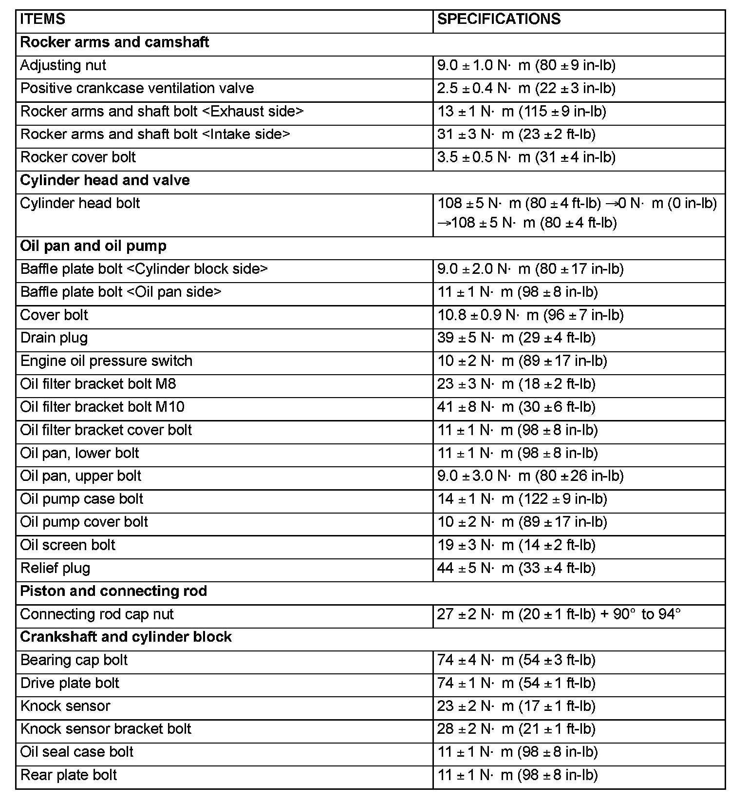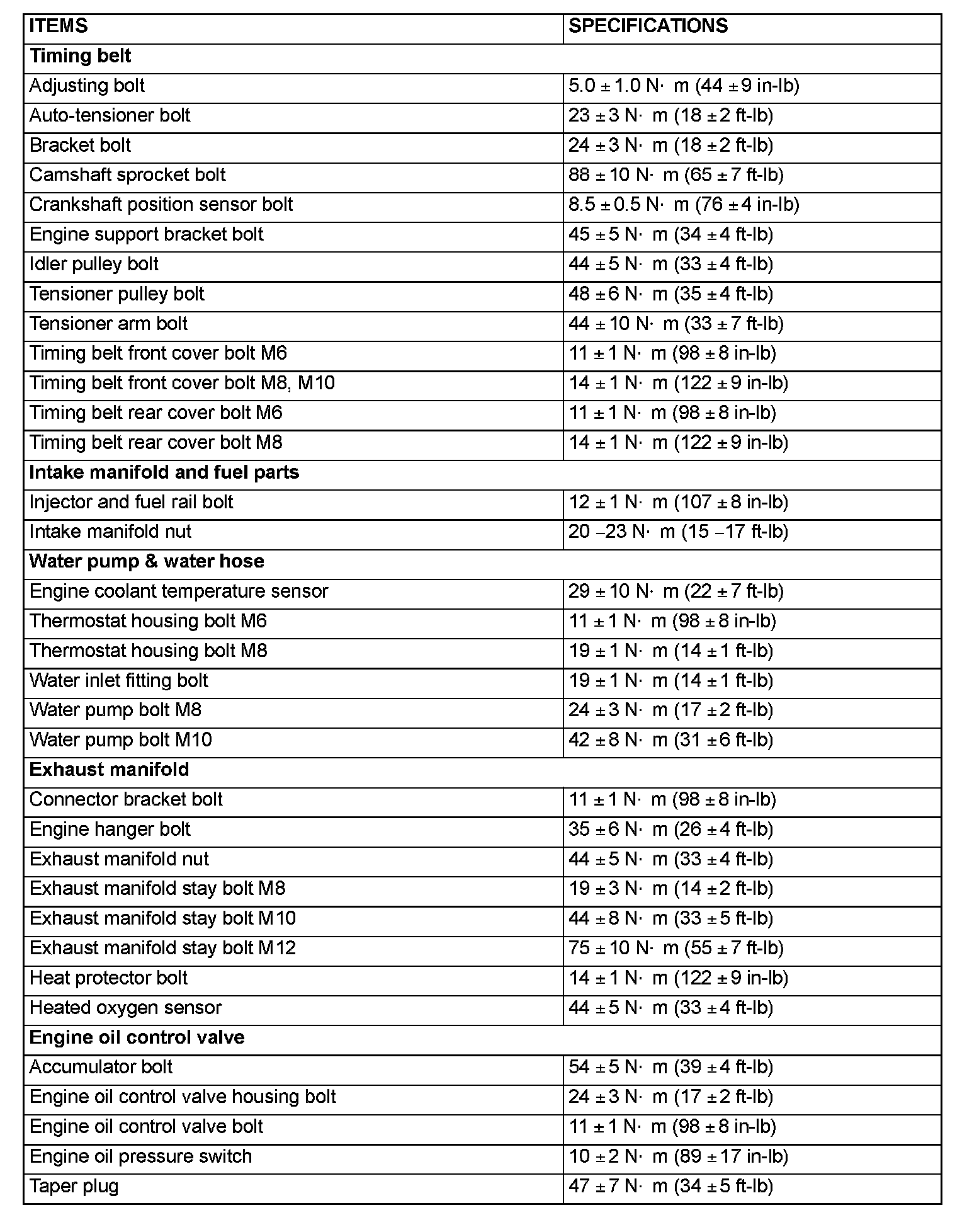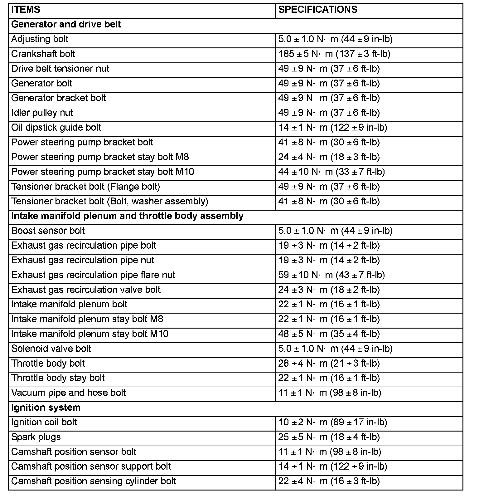 FASTENER TIGHTENING SPECIFICATIONS