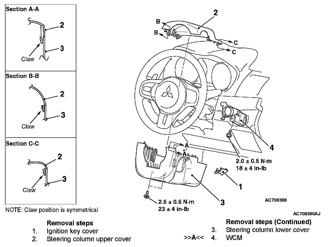 Check that the top claw of WCM is fixed securely to the boss of steering lock and the antenna is not floated on the key cylinder.