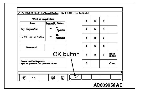 1. Enter the password on "Steering Lock Unit Registration" screen and press the OK button to register the KOS ID.
