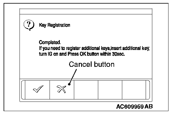 NOTE: When the key cannot be registered using scan tool MB991958, refer to Inspection Procedure 2 "The keyless operation key cannot be registered using scan tool.