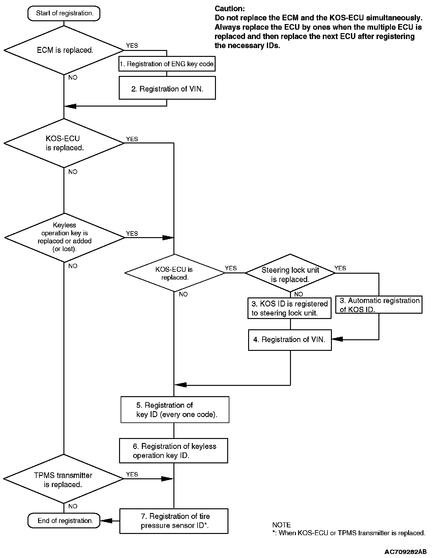 NOTE: The KOS-ECU memory can memorize the maximum 4 different keyless operation keys (keyless operation key ID codes and key IDs).