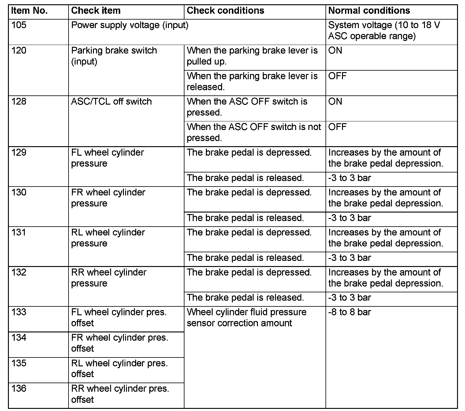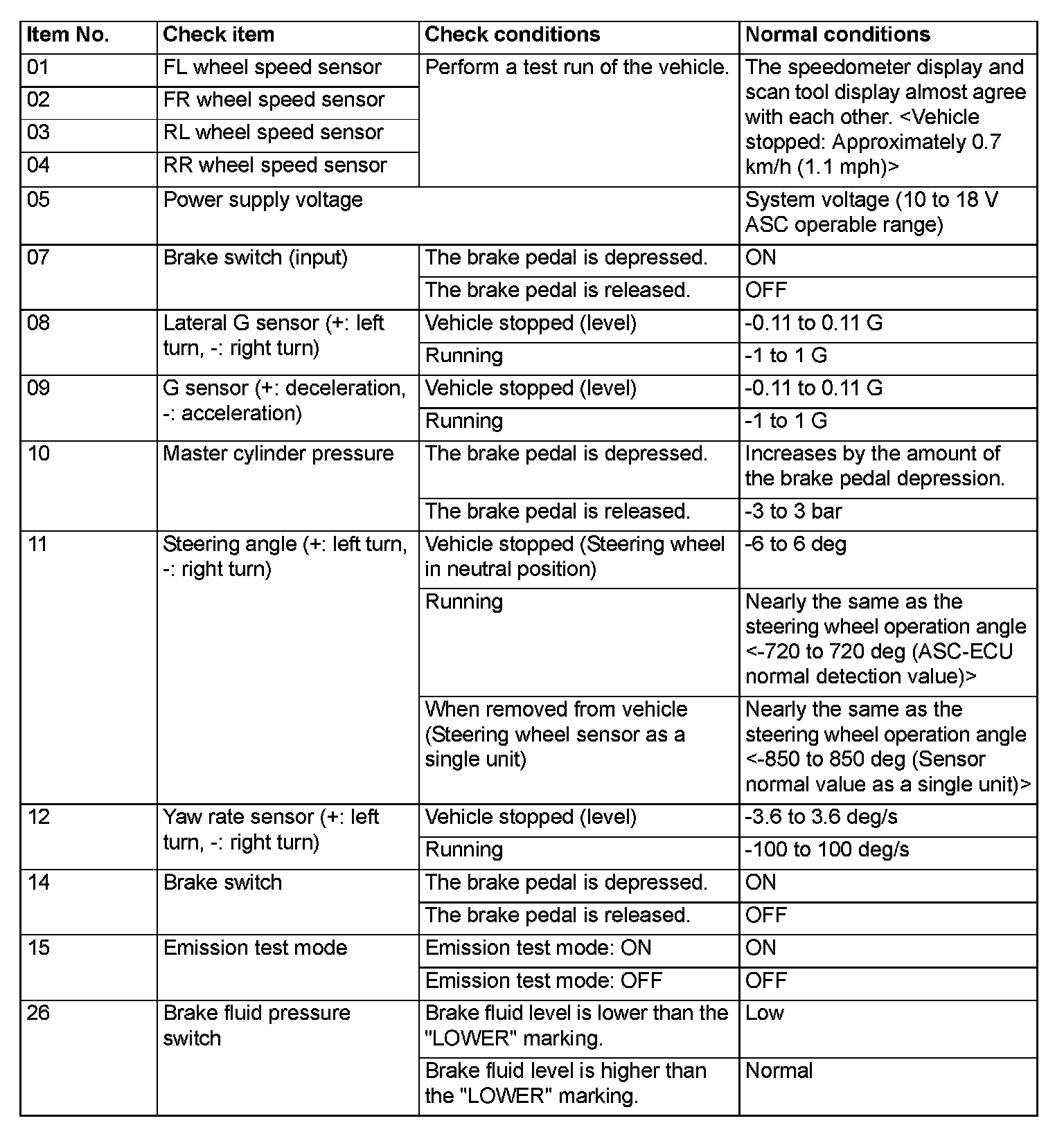 While ASC-ECU is disabled by the diagnostic function, the scan tool displayed data is different from the actual measurement.