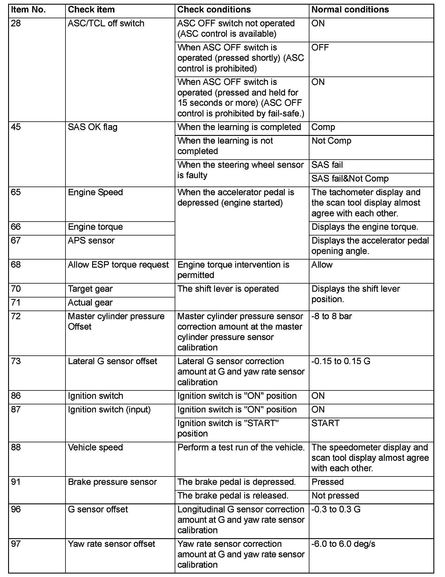 The following items of ECU input data can be read using the scan tool.