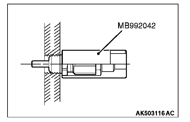 1. Drain engine coolant, then remove the engine coolant temperature sensor using the special tool MB992042(engine coolant temperature sensor wrench).