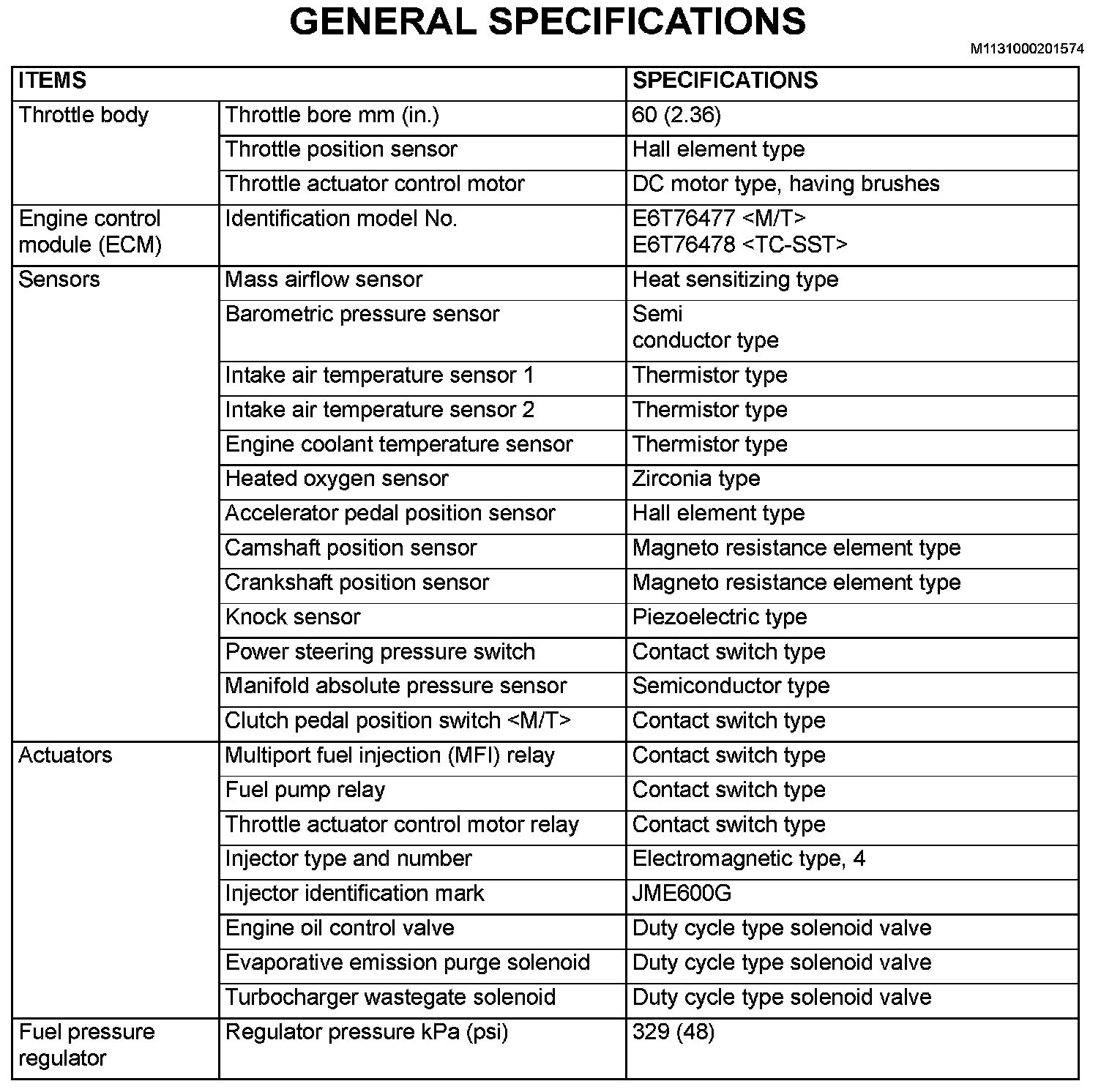 GENERAL SPECIFICATIONS