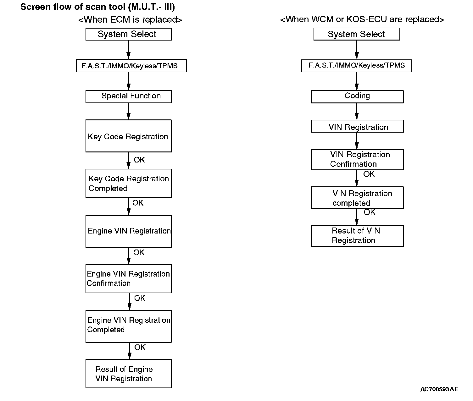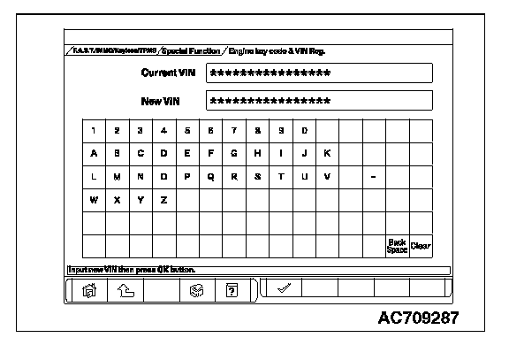 11. Push the OK button after "ENG key code & VIN Reg." is displayed.