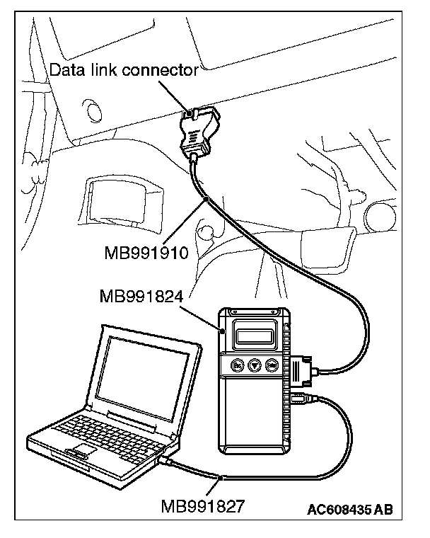 5. Connect special tool MB991910 to the data link connector of the vehicle.