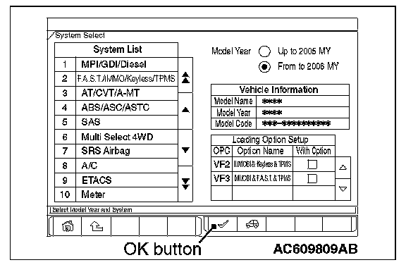 10. Select "From 2006 MY" under "Model Year". Check that "Vehicle Information" contents are correct.