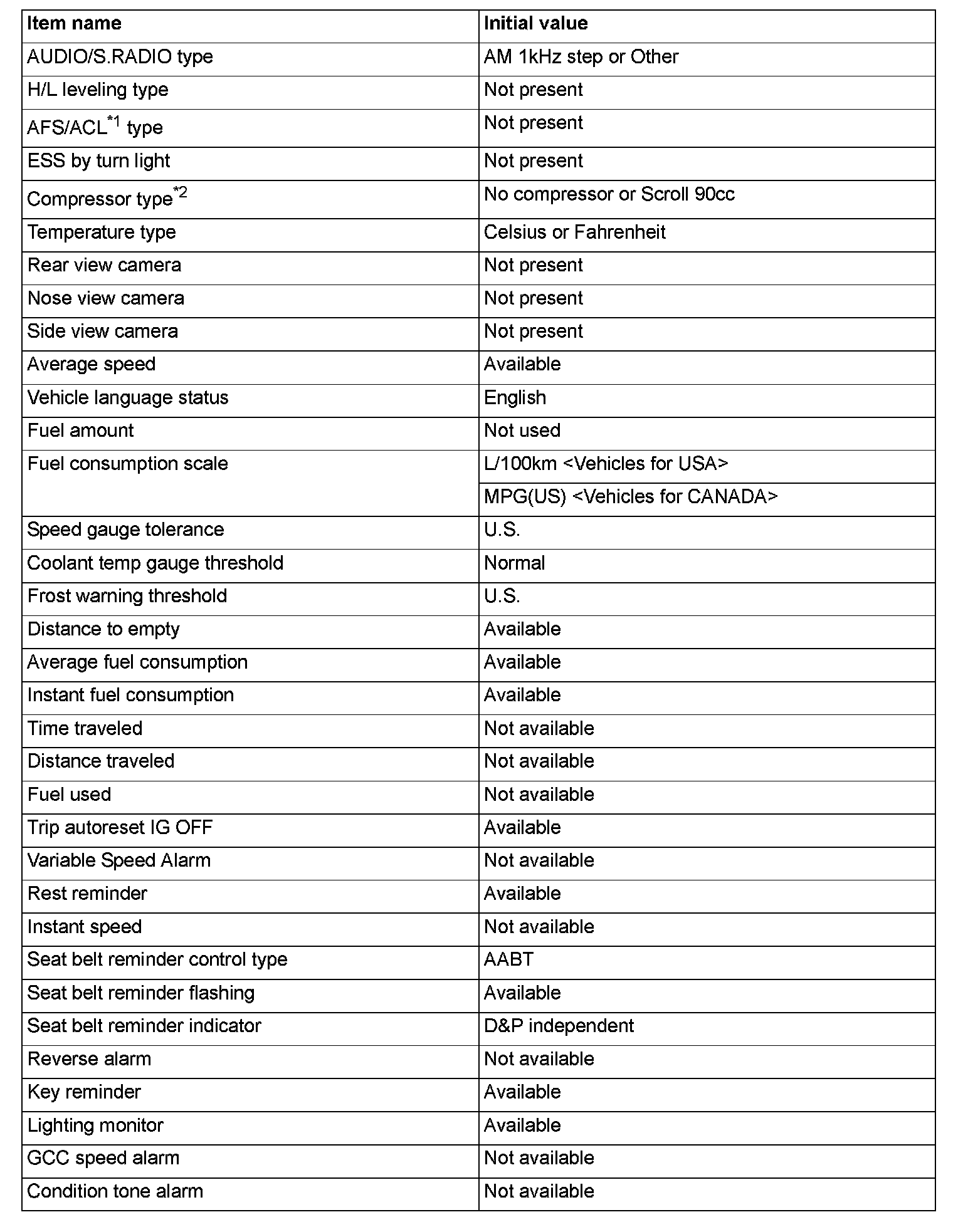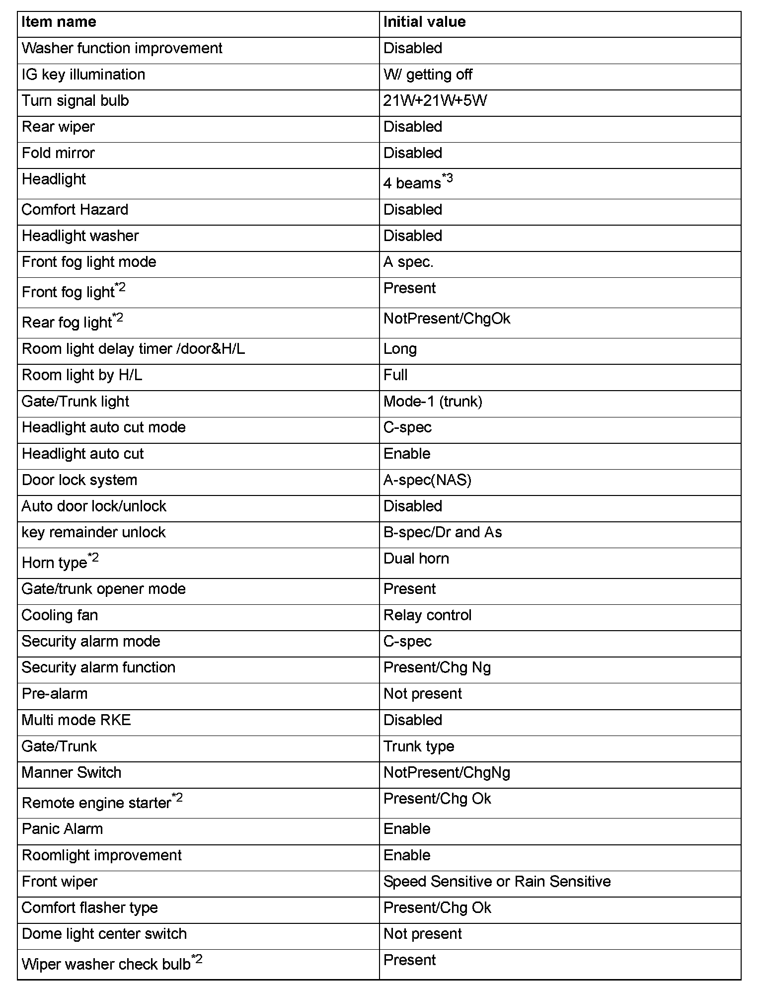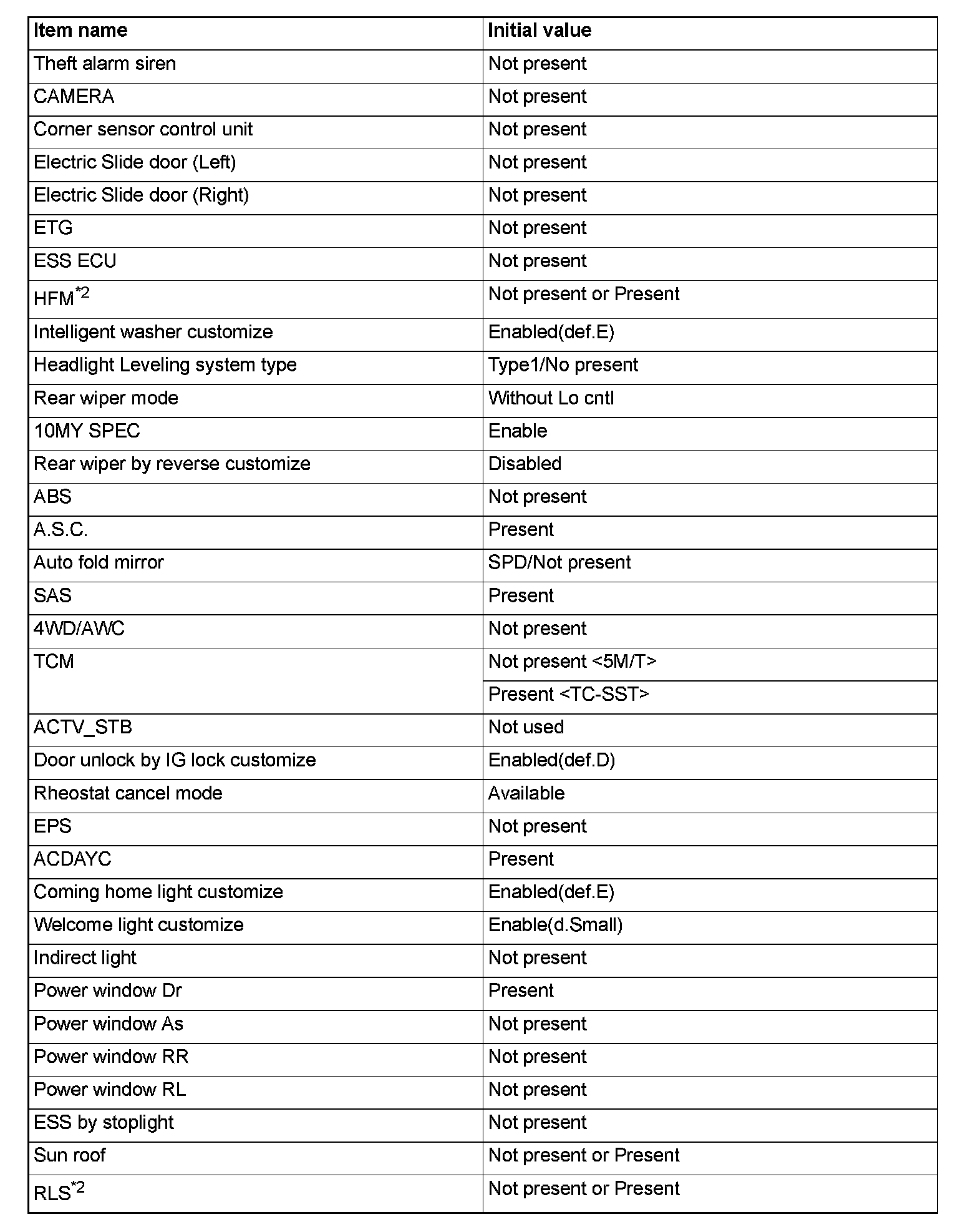 ^ If there is any item indicated by the option coding after equipment change, set ETACS-ECU so that the option coding data corresponds with the equipment content. Functions and systems do not work normally if the setting does not correspond with the equipment.