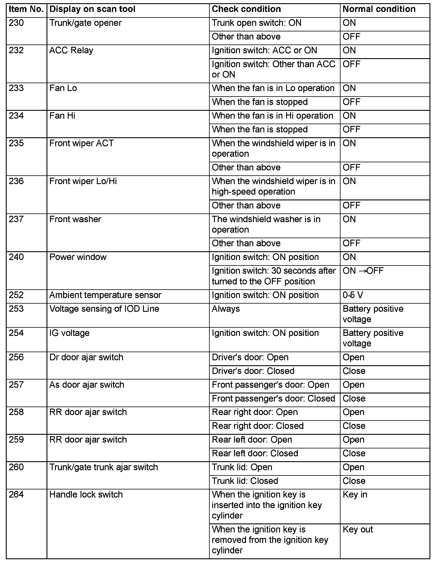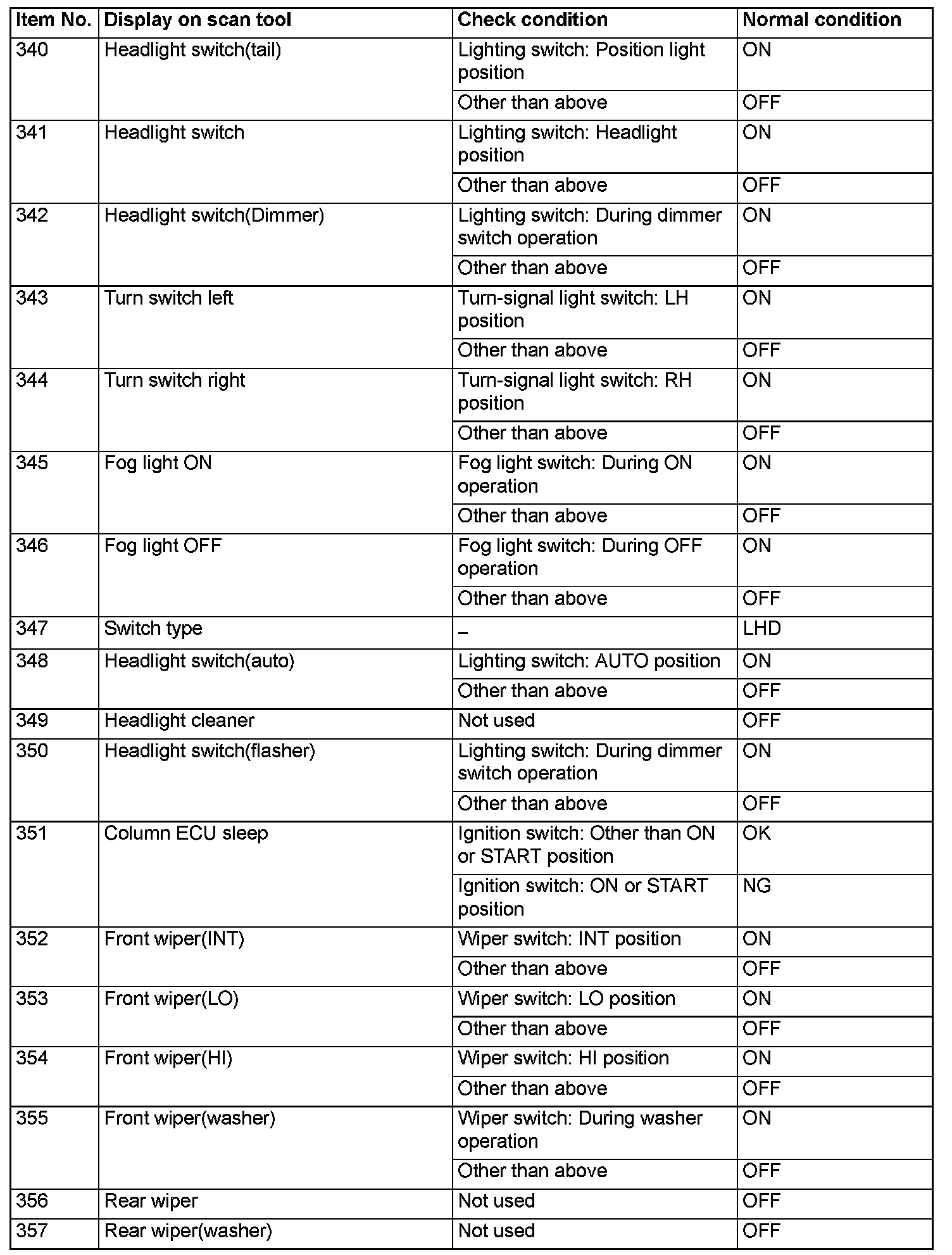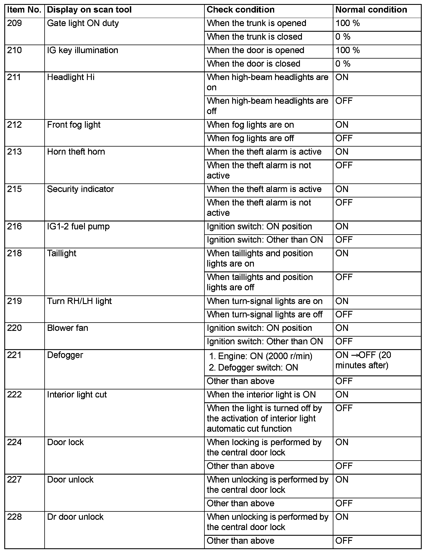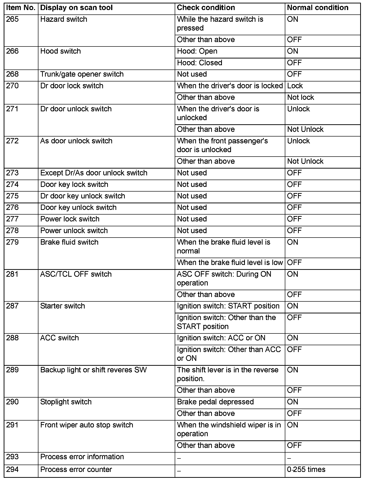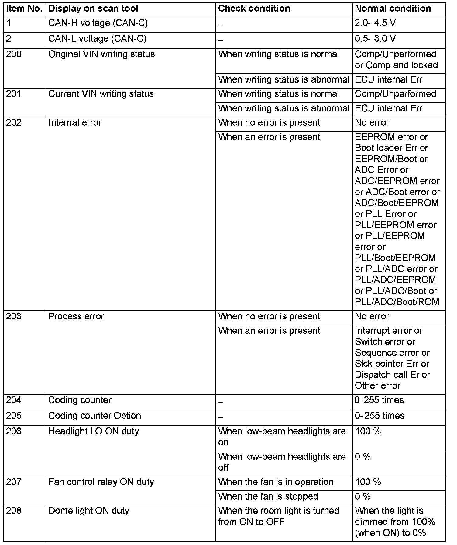 For some information result read out by the ECU, the specific items may not be displayed.