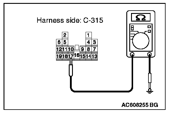 STEP 3. Check the wiring harness between ETACS-ECU connector C-315 (terminal 17) or C-317 (terminal 15) and the ground.