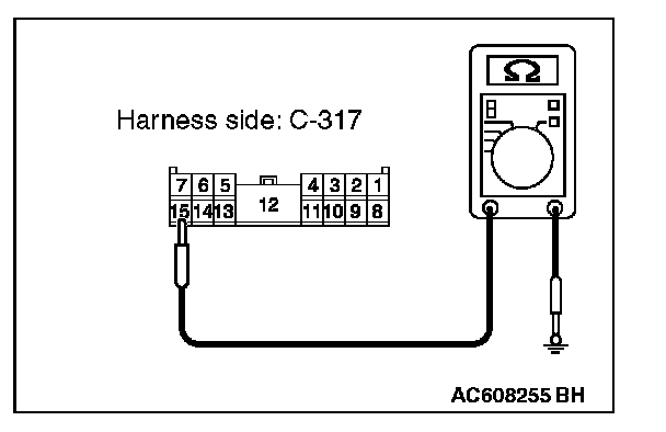 3. Measure the resistance value between ETACS-ECU connector C-317 terminal 15 and ground.