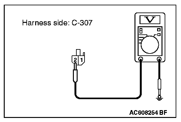 2. Measure the voltage between ETACS-ECU connector C-307 terminal 2 and ground.