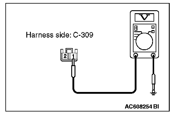 3. Measure the voltage between ETACS-ECU connector C-309 terminal 1 and ground.