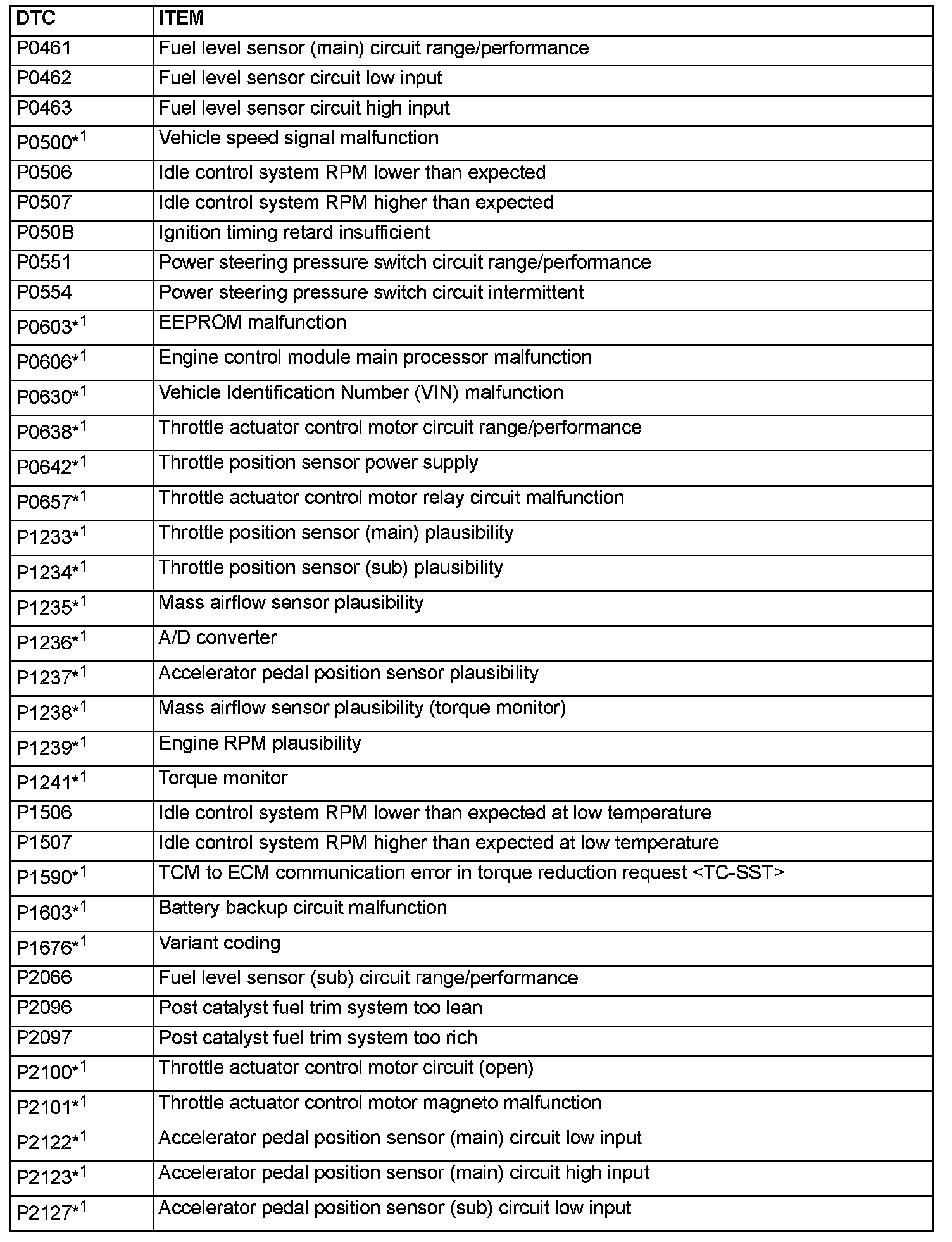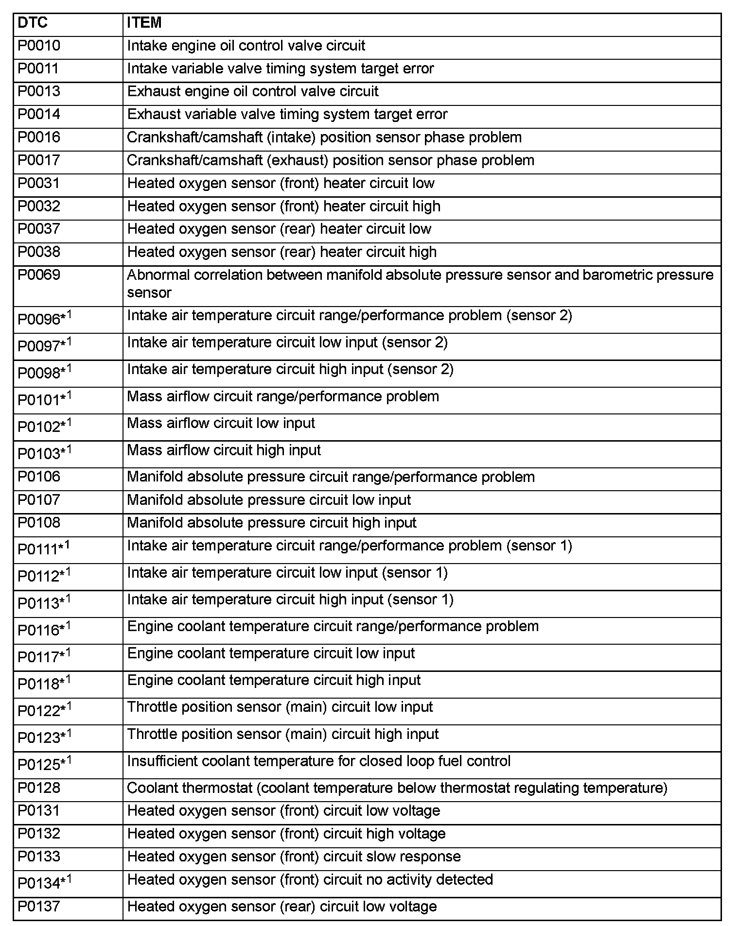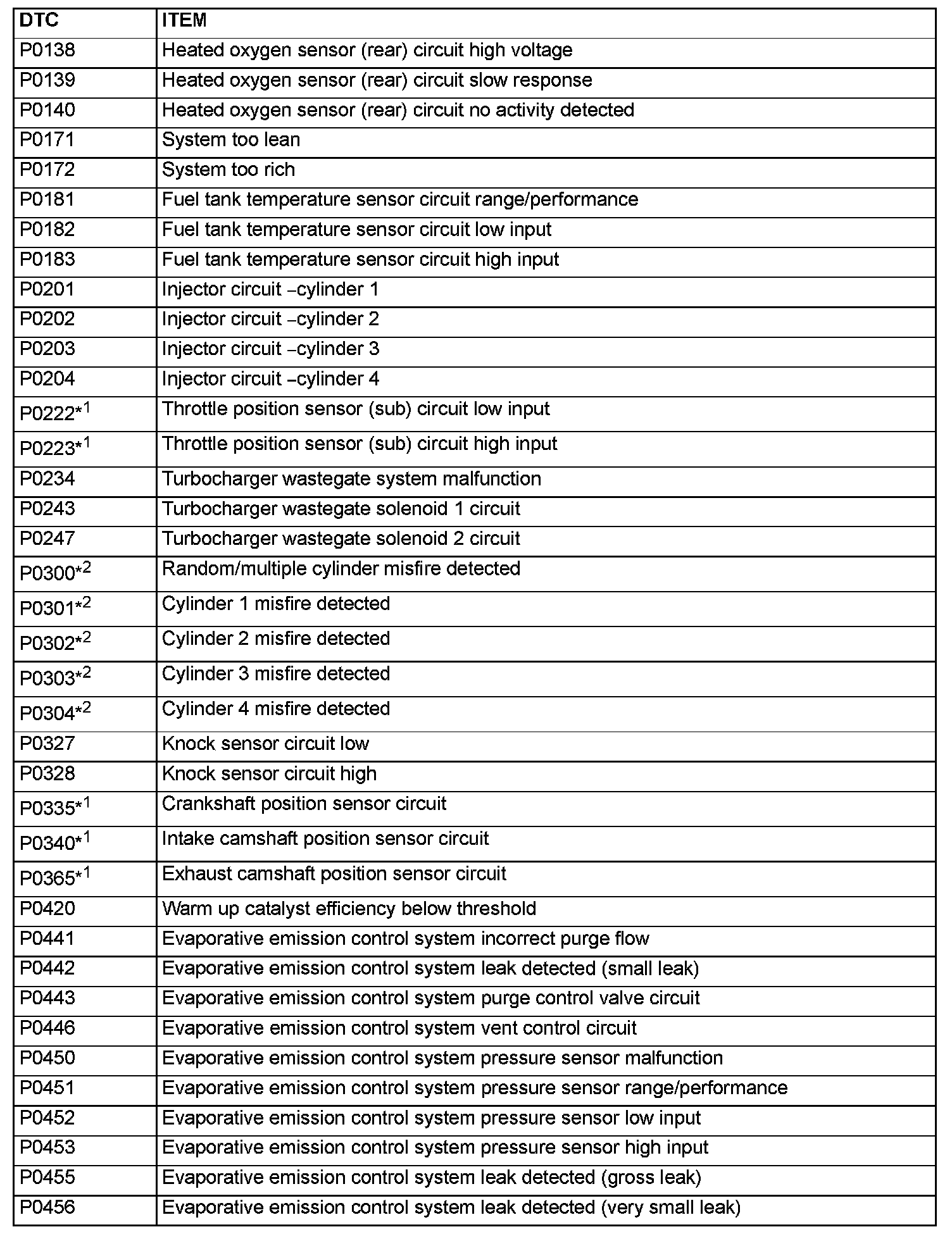 - The codes marked with a "*2" in the diagnostic trouble code number column have the following two conditions for illuminating the Malfunction Indicator Lamp (SERVICE ENGINE SOON or Check Engine Lamp).