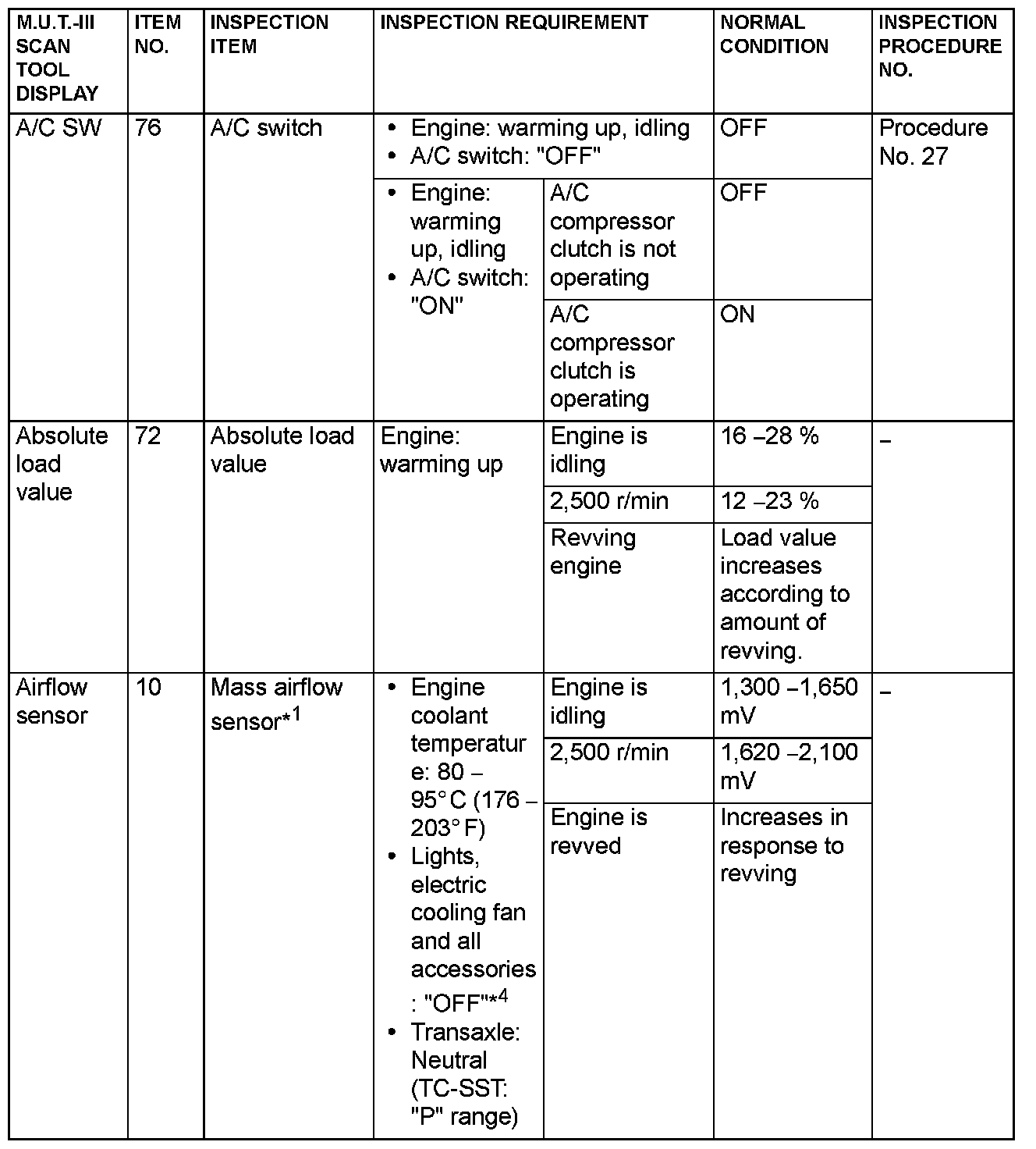 - *1: In a new vehicle [driven approximately 500 km (311 mile) or less], the mass airflow sensor output value is sometimes 10 % higher than the standard value.