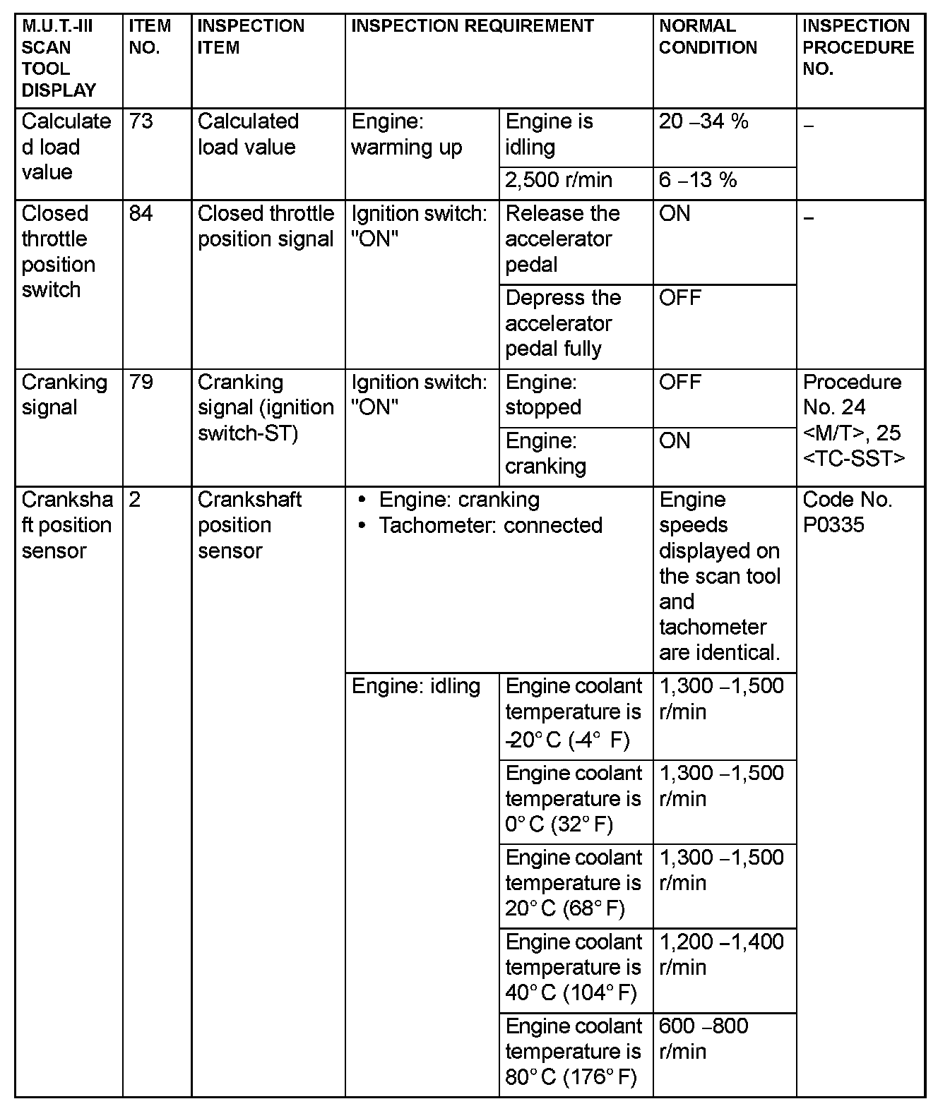 - *5: Data items are displayed on M.U.T.-III display, but the in-line 4 engine is not applicable and its data is displayed as "N/A".