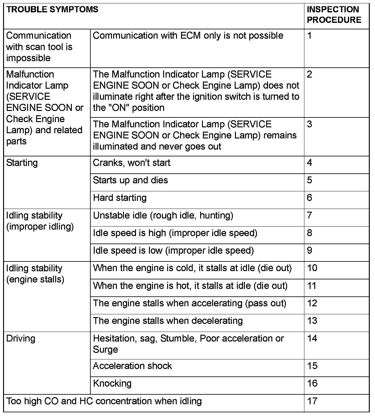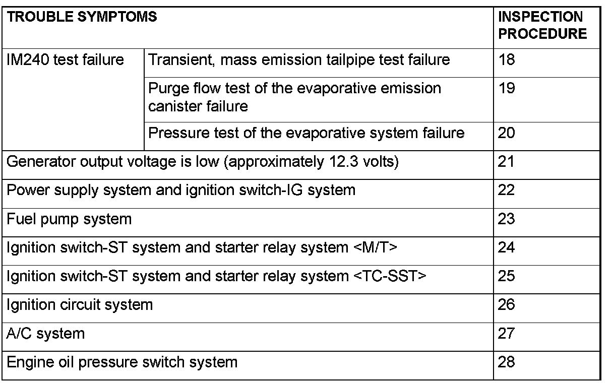 Trouble Symptom Chart (Part 1):