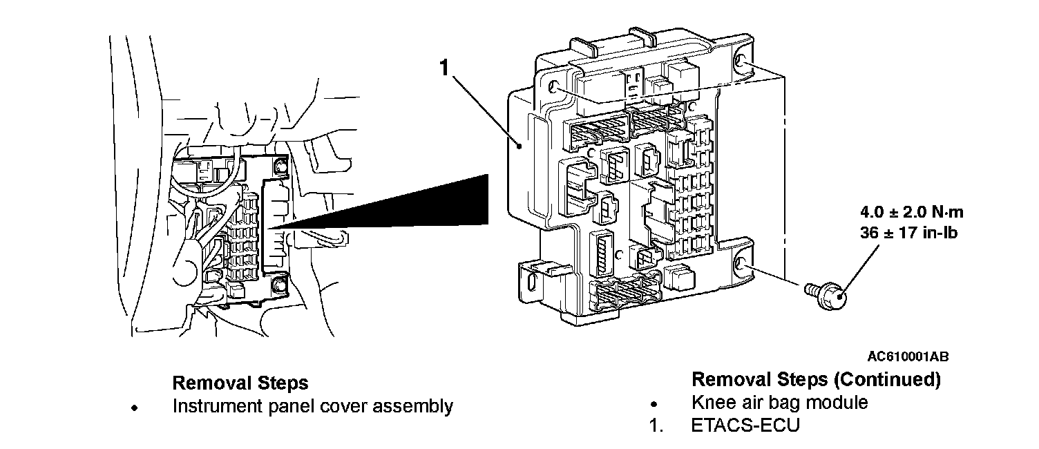 - Before removing the ETACS-ECU and knee air bag module, refer to Service Precautions and Knee Air Bag Module.