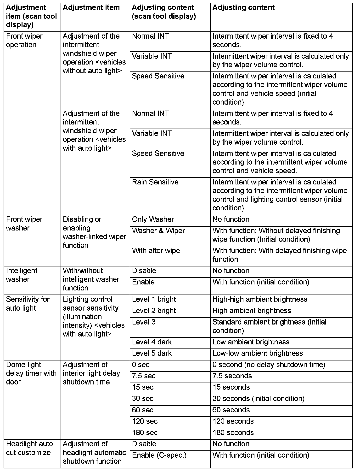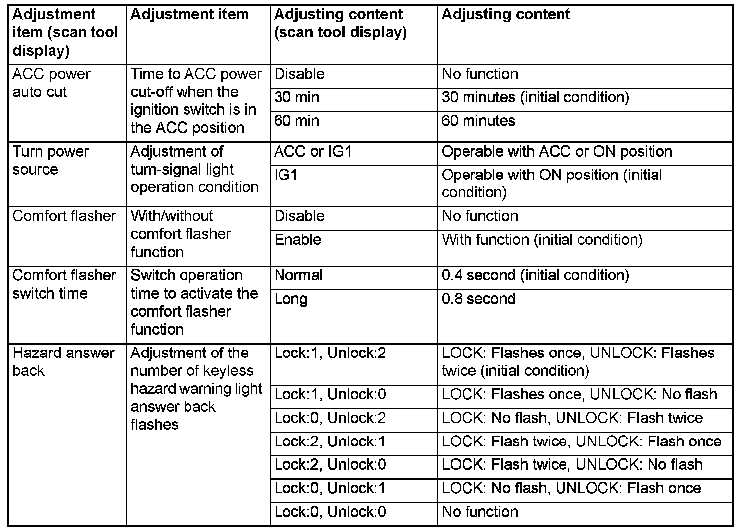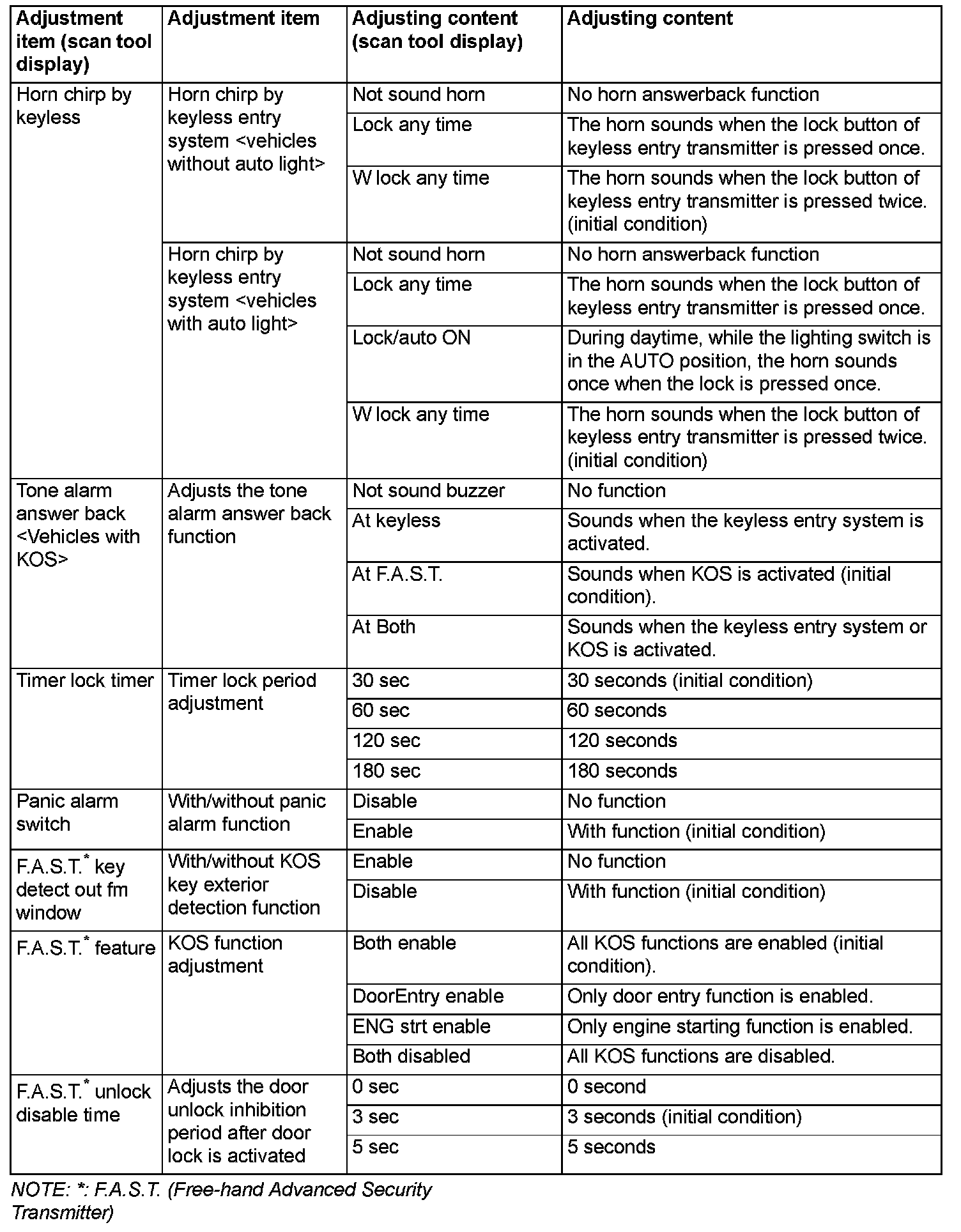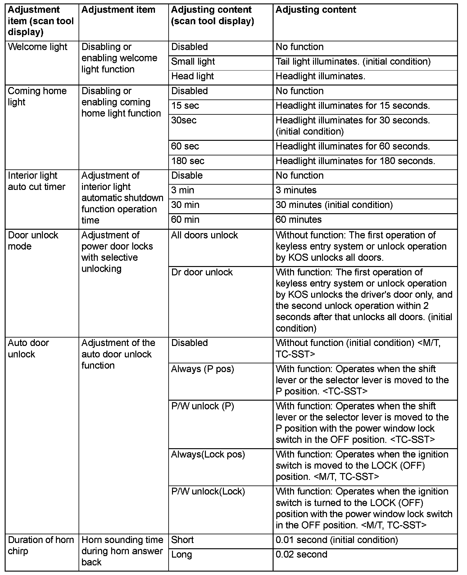 By operating the ETACS system or MMCS of scan tool MB991958, the following functions can be programmed. The programmed information is held even when the battery is disconnected.