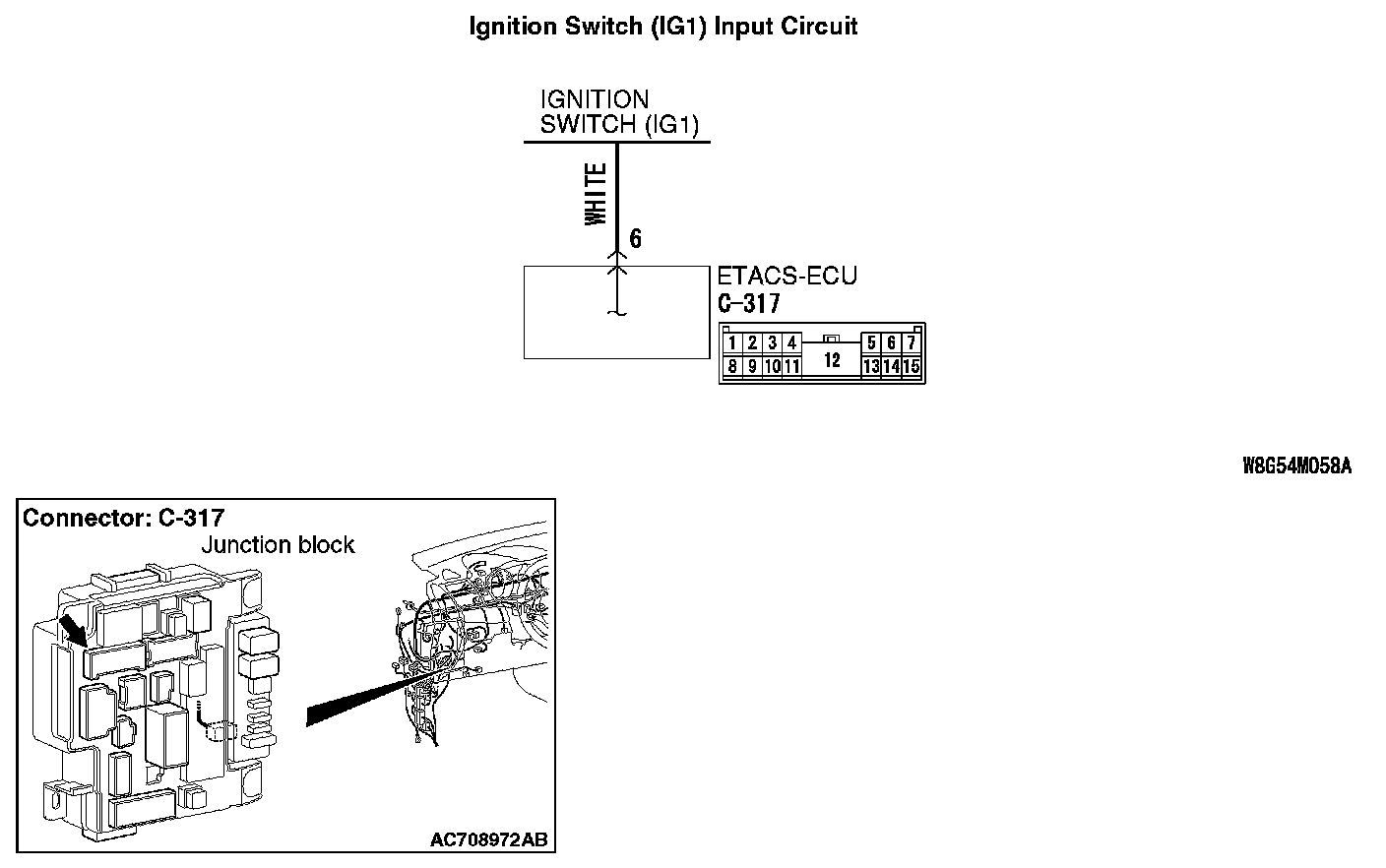 STEP 4. Check the wiring harness between ETACS-ECU connector C-317 (terminal 6) and the ignition switch (IG1).
