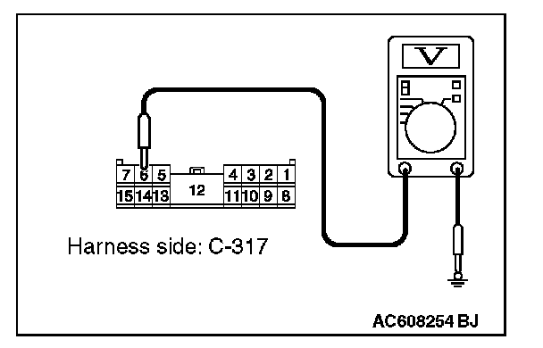 1. Disconnect ETACS-ECU connector C-317 and measure the voltage available at the junction block side of the connector