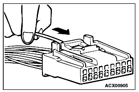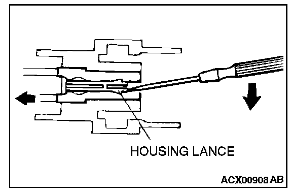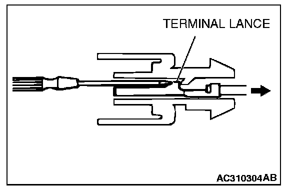 CONNECTOR TERMINAL ENGAGEMENT AND DISENGAGEMENTLoosely engaged terminals can be repaired by removing the female terminal from the connector housing and raising its lance to establish better engagement. Removal of the connector terminal used for MFI and INVECS-II A/T control circuit can be done in the following manner.