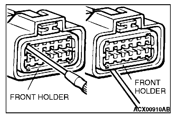 2. Push the harness wire of the terminal to be repaired deep into the connector from the harness side and hold it there.
