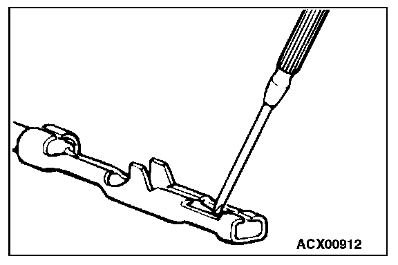 3. Press the contact point to the male terminal down by holding a screwdriver [1.4 mm (0.06 inch) width] as shown in the figure.