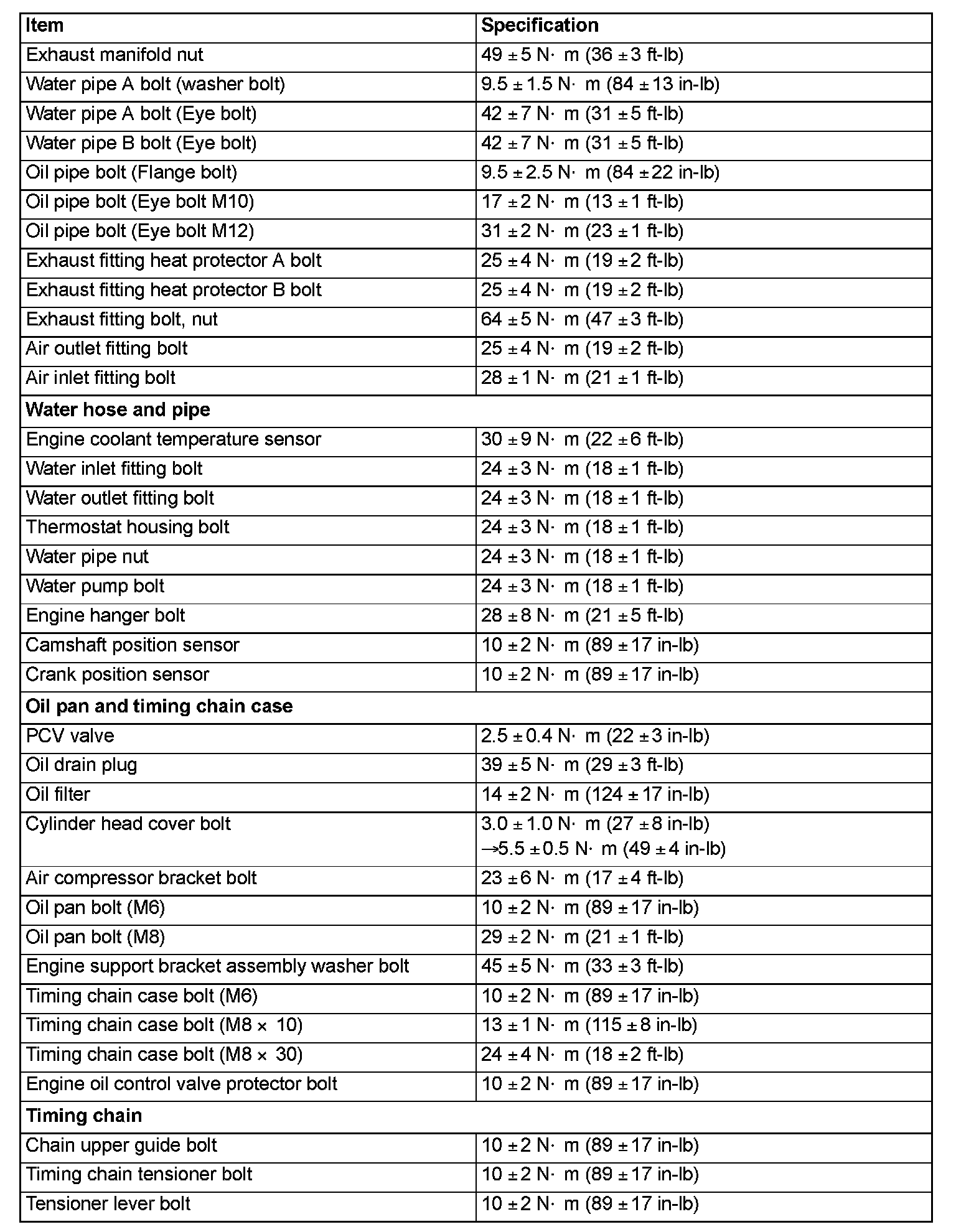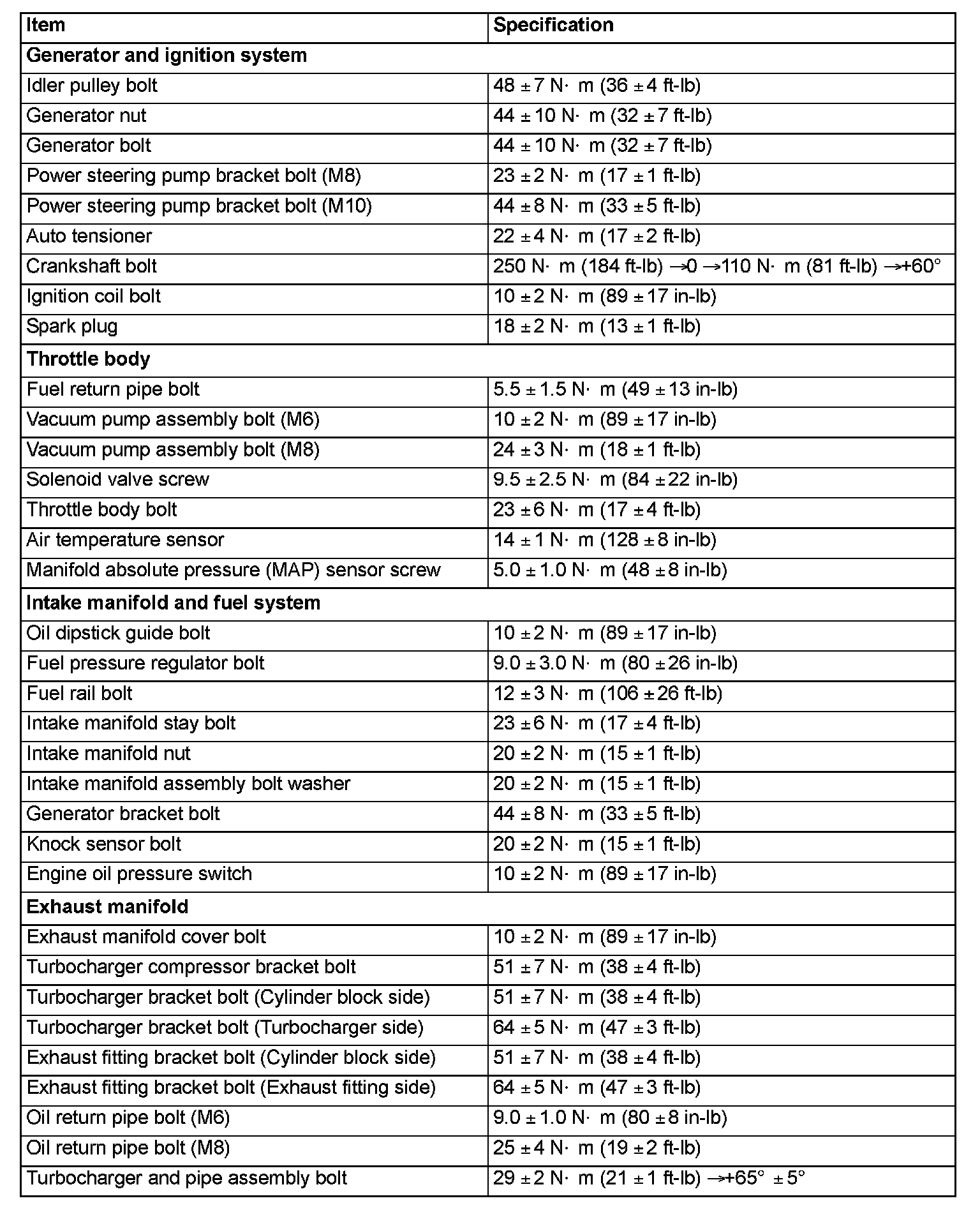 Fastener Tightening Specifications