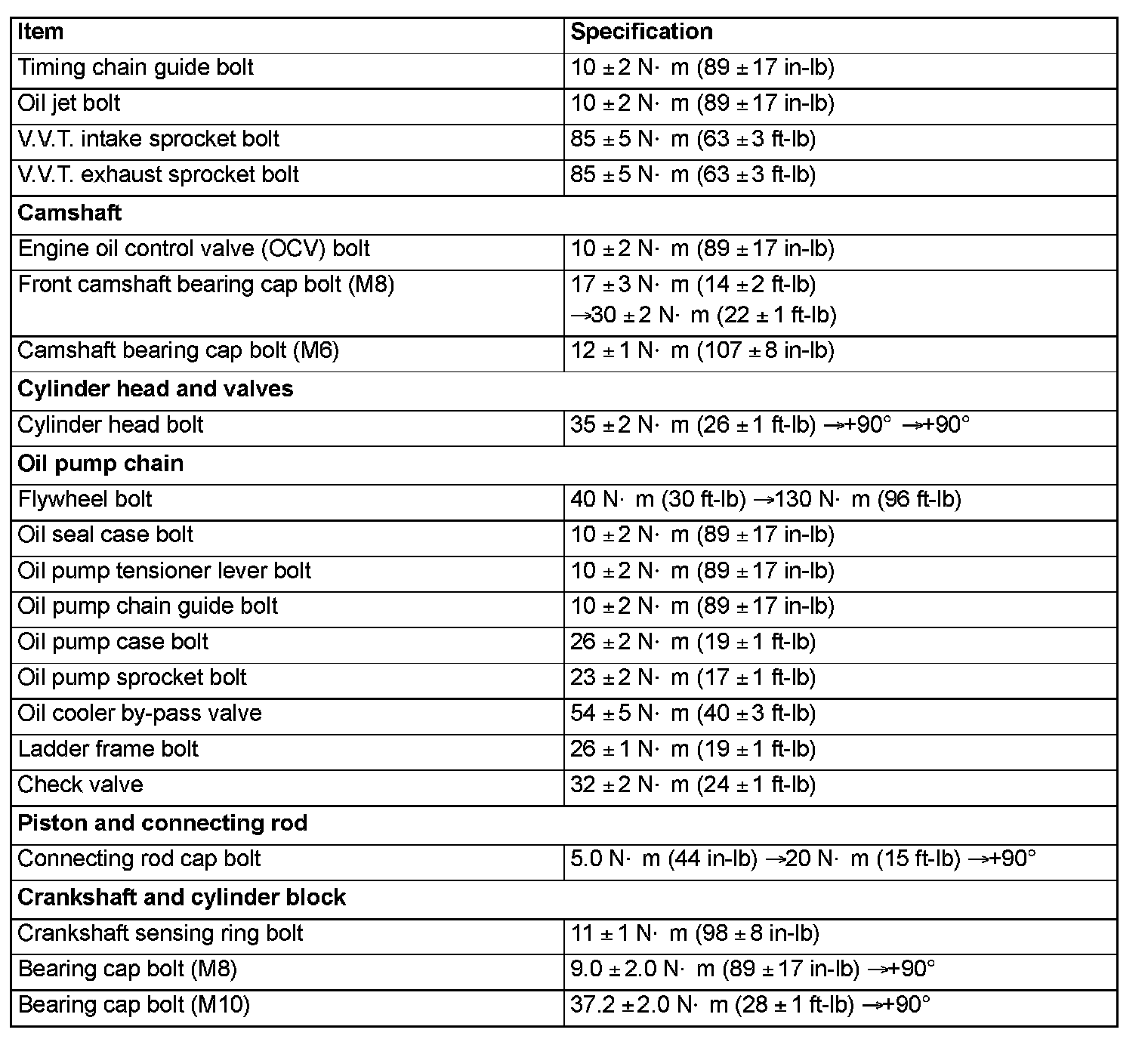 After tightening to the specified torque, further tighten 45 degrees and 90 degrees, or 180 degrees (90 degrees + 90 degrees). Follow the tightening method described in the body of the manual because the tightening method differs from part to part.