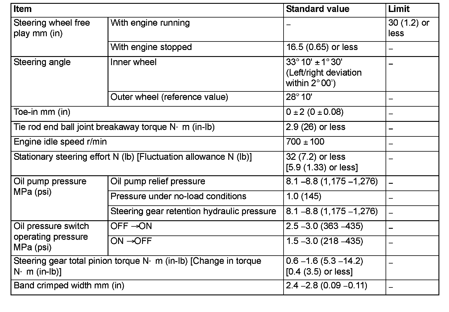 SERVICE SPECIFICATIONS