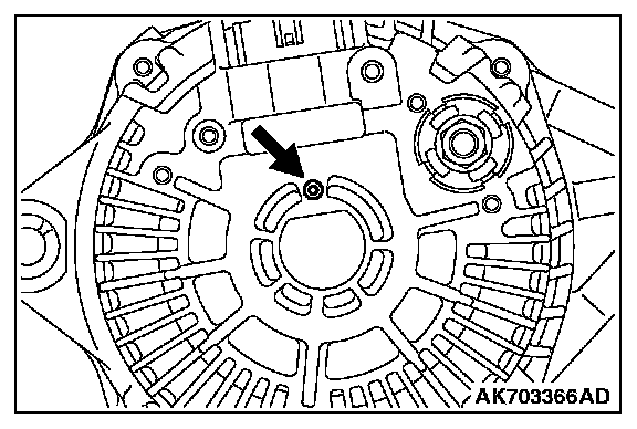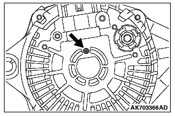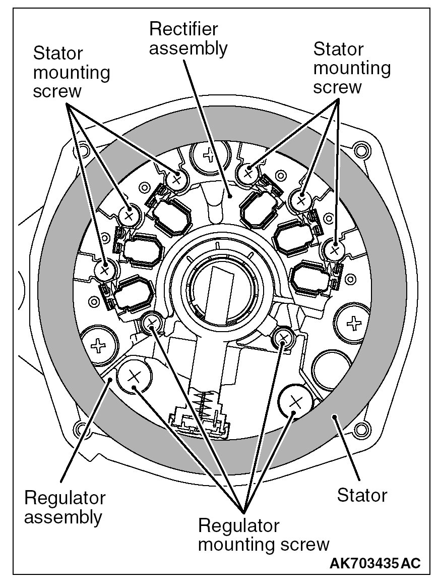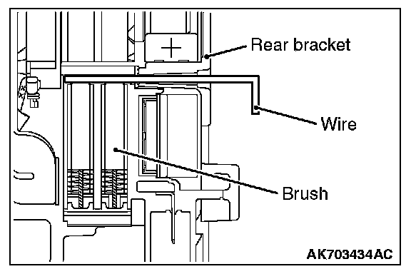 After installing the regulator assembly, insert a piece of wire through the hole in the rear bracket while pressing the brush to keep the brush against movement.