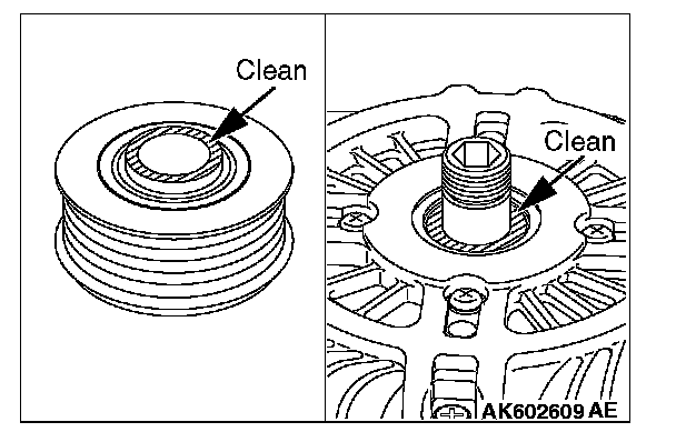 1. Clean the inner race of the front bearing and that of the pulley.