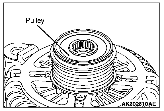 4. Hold the pulley with the closed wrench. Rotate the rotor shaft clockwise to remove the pulley.