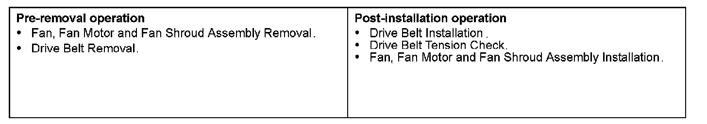 2. Tie the removed A/C compressor and clutch assembly with a string at a position where it will not interfere with the removal and installation of the generator assembly.