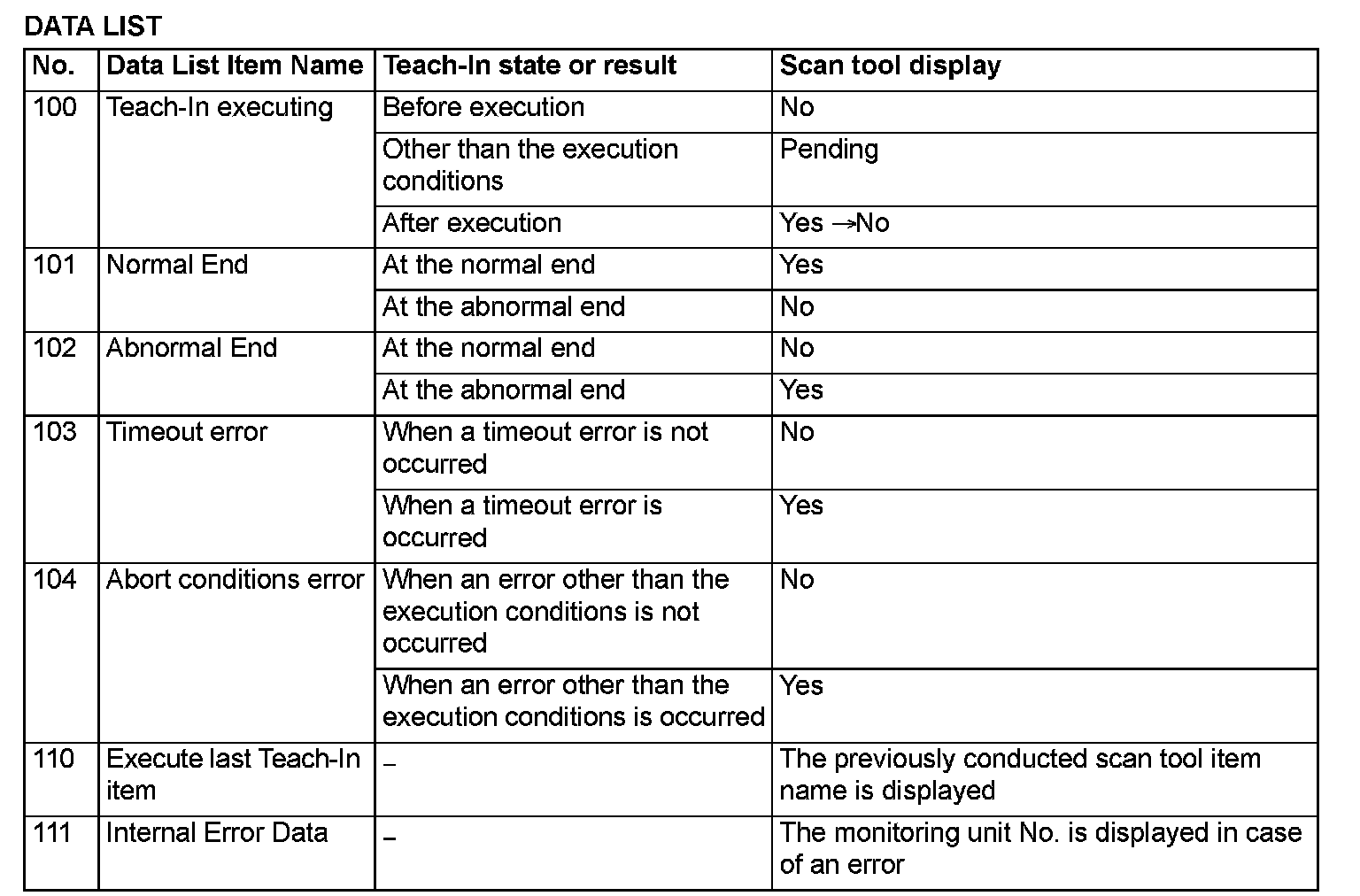 ^ After Teach-in completion, check that it completed normally. (Teach-in execution results is displayed in the following Data list.)
